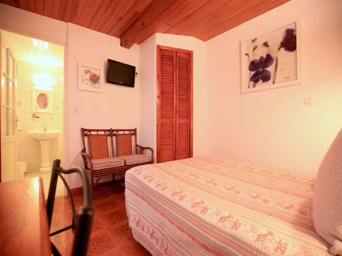 Chambres situées derrière le bâtiment principal sans vue dont une avec fenêtre de toit. Les chambres ne sont pas accessibles aux personnes à mobilité réduite et non climatisées. Elles restent généralement fraiche vu qu'elles sont situées derrière le bâtiment principal. Ventilateurs à dispositions si besoin.